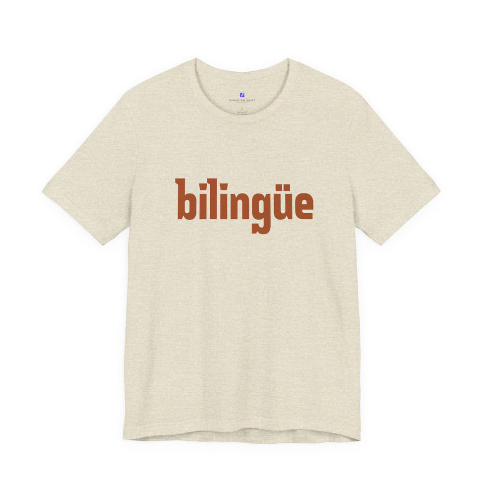 Showcase your linguistic pride with our Bilingüe Heather Tee, exclusively from Paradigm Shift Design Shop. This clean, cream-colored t-shirt is made with soft heather material for comfort and timeless style.